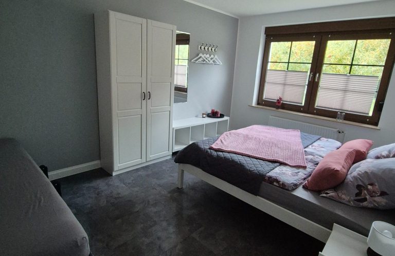 Im Schlafzimmer steht ein DoppelBett bereit + ein Einzelbett mit Rausfallschutz. Gerne stellen wir auch ein Baybett hinzu. Schrank, Spiegel & Nachttische runden das ganze ab. Bettwäsche ist inklusive.